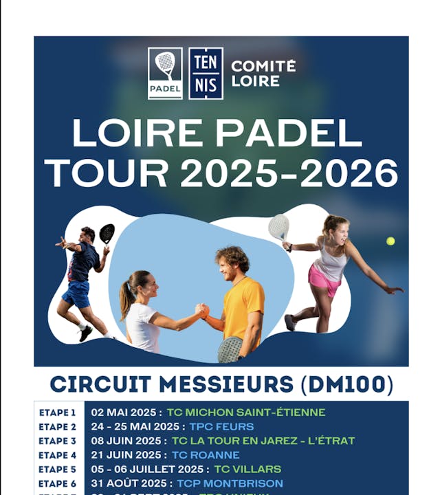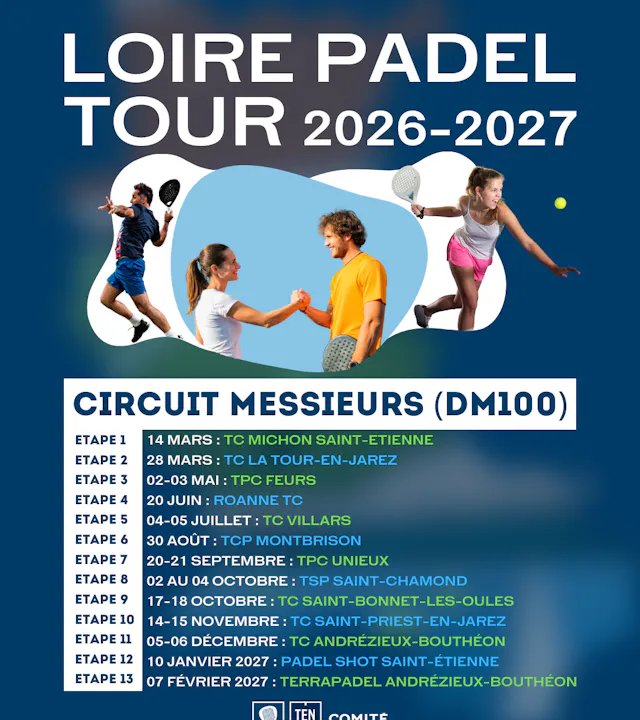 Le Loire Padel Tour est un circuit de 11 tournois/étapes, co-organisé avec les clubs partenaires du Comité Départemental 42