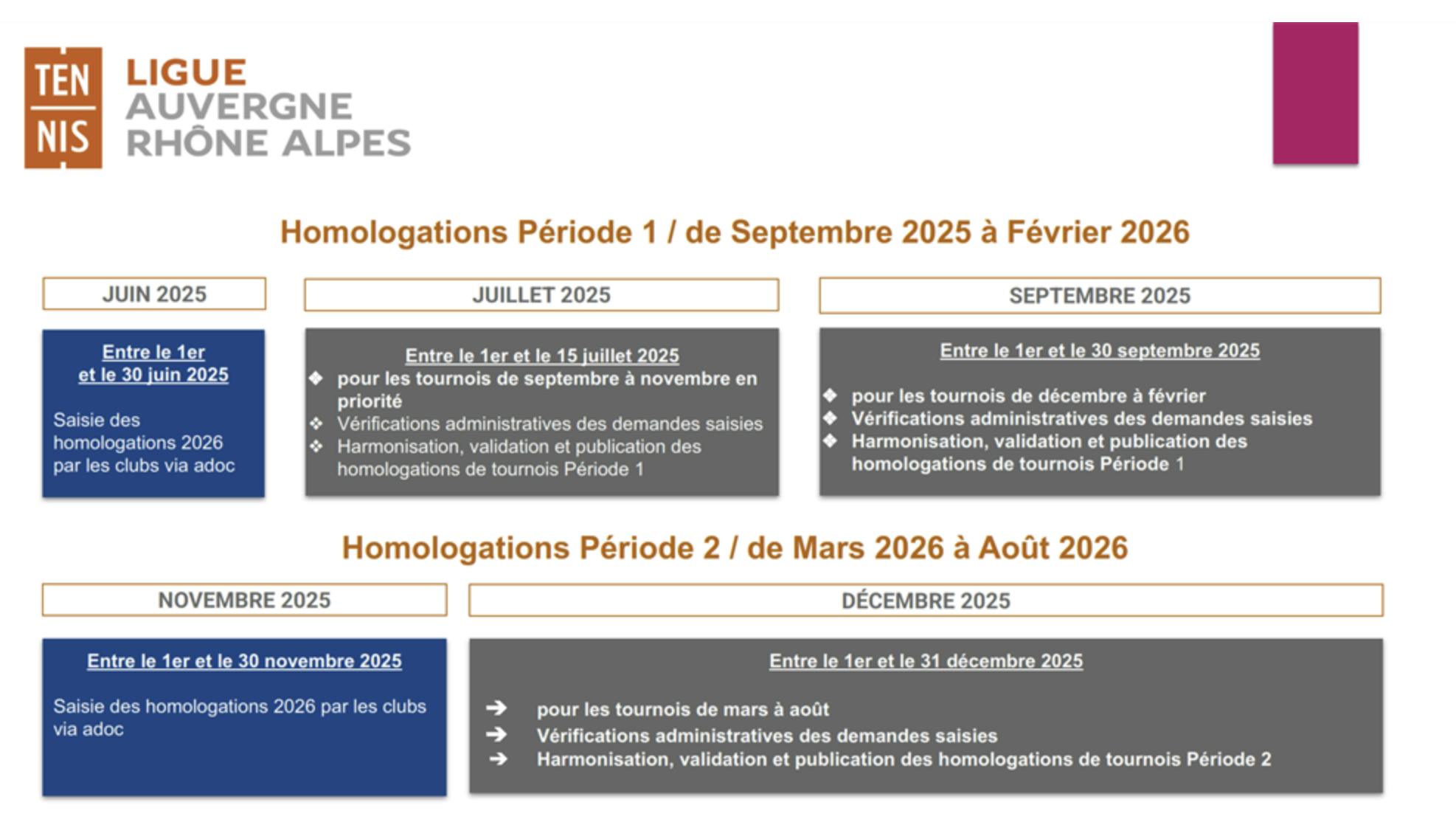 Pour rappelle les homologations de tournois jeunes sont possible tout au long de l'année. Néanmoins, si vous souhaitez voir apparaître vos tournois dans les plaquettes départementales, nous avons demandons de vous transmettre vos dates de tournois en septembre pour la publication d'octobre. Et en décembre pour la publication de janvier. Passé ces dates, vos tournois apparaîtrons sur Ten'Up, mais pas sur les plaquettes départementales.